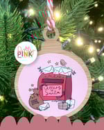 This gorgeous retro post box bauble features a cute illustration I’ve designed and printed, hand cut, stuck and varnished onto a beautiful wooden bauble.