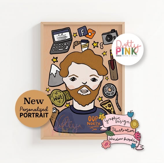 Are you looking for a personalised portrait for work, home or as a gift? Maybe you want to stand out from the mass produced caricatures that are making the rounds on social media? Or perhaps you want to showcase your small business and everything you do in a unique and creative way? I am offering personalised portraits just like these - featuring a head and shoulders character based off a photo that you send me. You can also choose up to 10 items to feature round the outside too.
